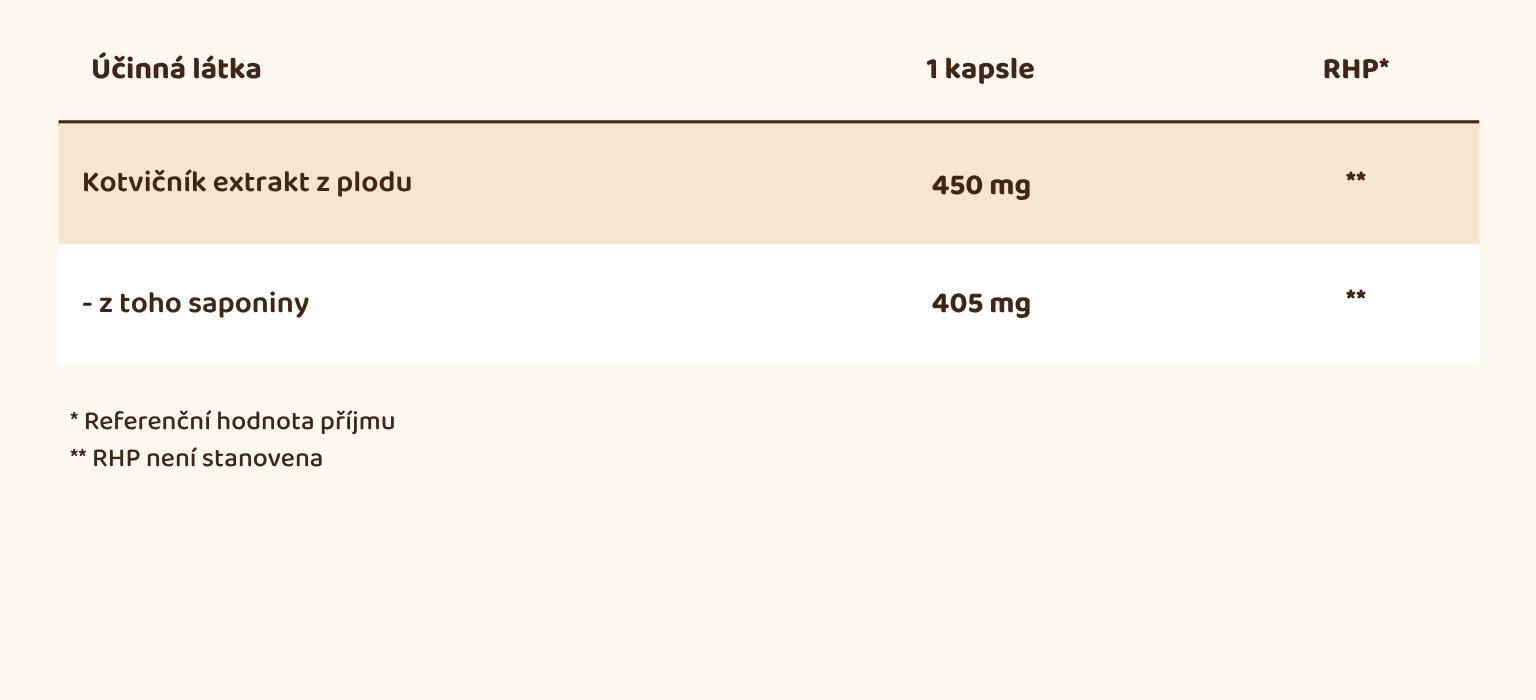 Alergeny jsou vyznačeny tučněExtrakt z plodu kotvičníku zemního (Tribulus terrestris) s obsahem 90 % saponinů, HPMC kapsle.